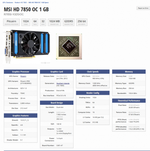 Shes kartelen grafike MSI HD 7850 OC 1GB e cila eshte ne gjendje shum te mire e perdorur vetem se per sende personale ka kapacitet te barte te gjitha lojrat ne max dhe ultra settings dhe shum e qete nuk ndegjohet duke punuar, i nevojitet ne kabllo me 6 pina per ta perdorur dhe power 450w-500w minimum.