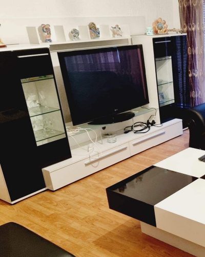 Shiten 3 kauqa 3sha tavonina e dhomes dhe komodona e televizorit dhe televizori. Te gjitha se bashku 810 €.